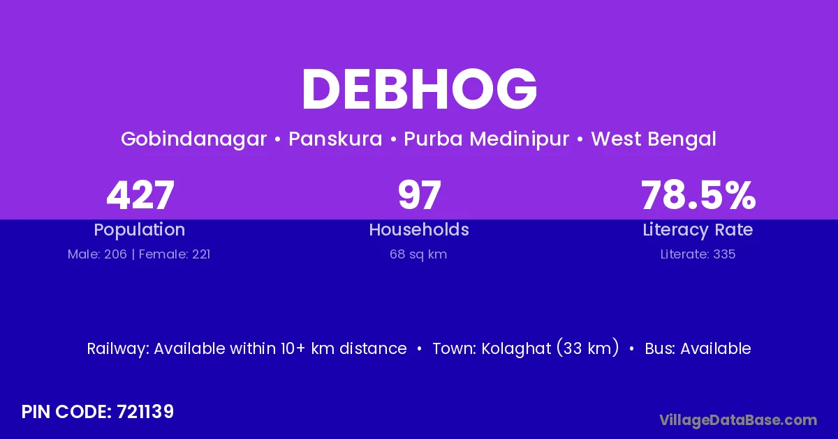 Basirhat (8 km) is the nearest town to Debhog village for major economic activities and is located approximately 8 km away.