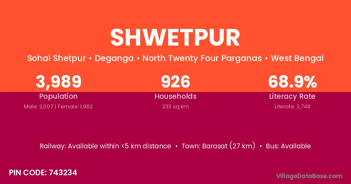Basirhat (7 km) is the nearest town to Shwetpur village for major economic activities and is located approximately 7 km away.