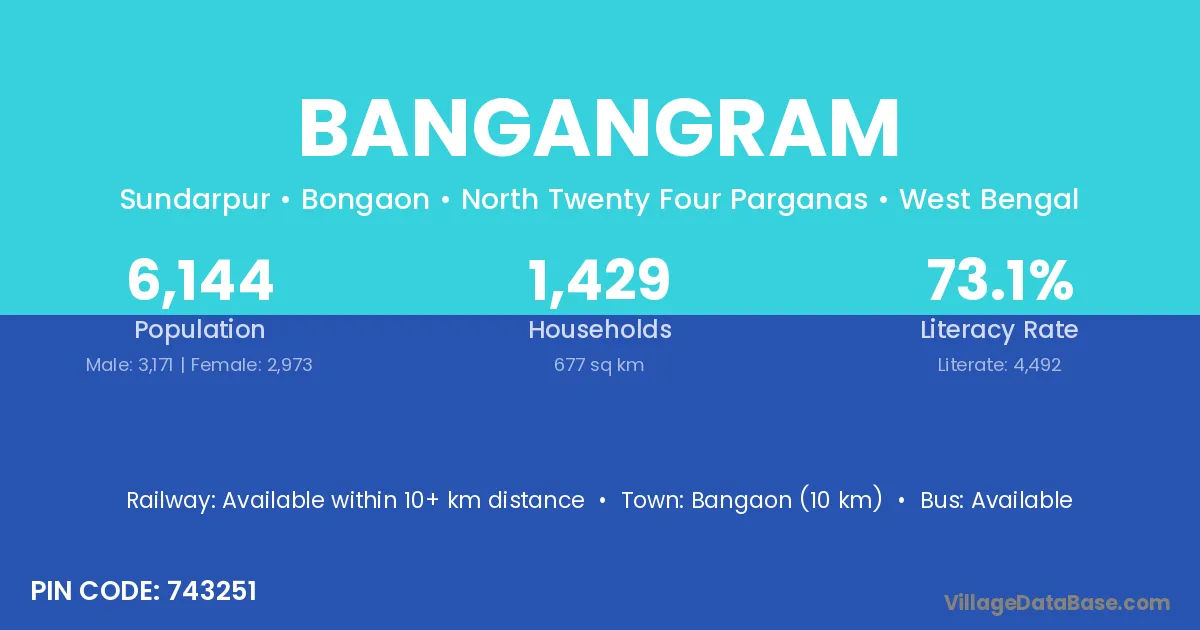 Bangangram village is located in the Bongaon Subdivision of the North Twenty Four Parganas district in West Bengal.