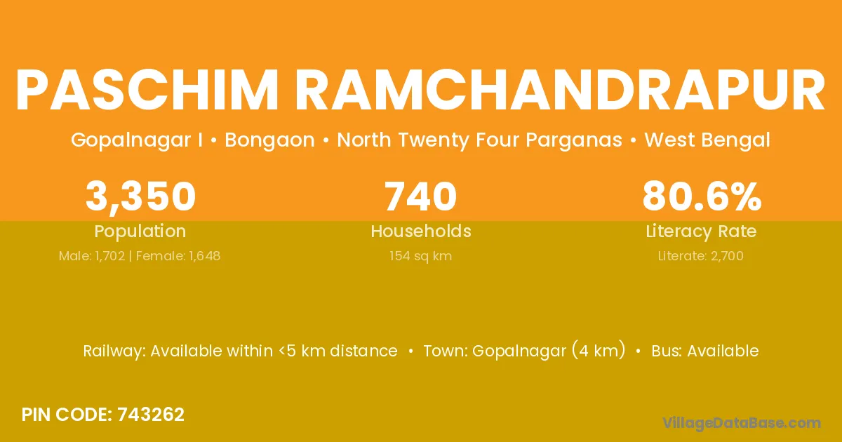 Gopalnagar (4 km) is the nearest town to Paschim Ramchandrapur village for major economic activities and is located approximately 4 km away.