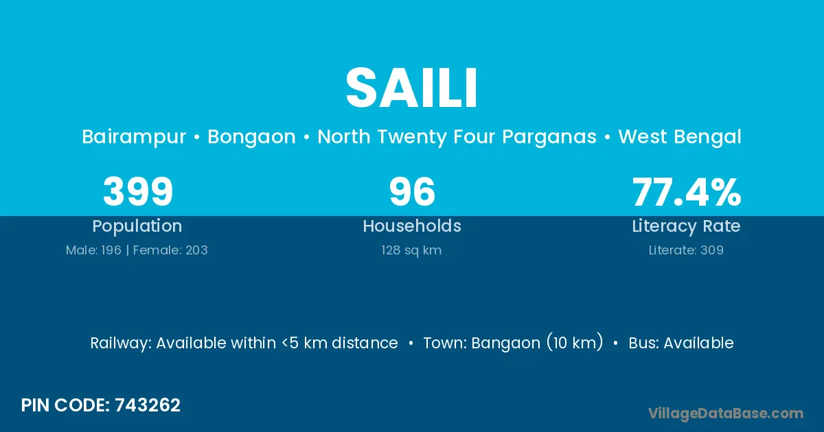 Bangaon (10 km) is the nearest town to Saili village for major economic activities and is located approximately 10 km away.
