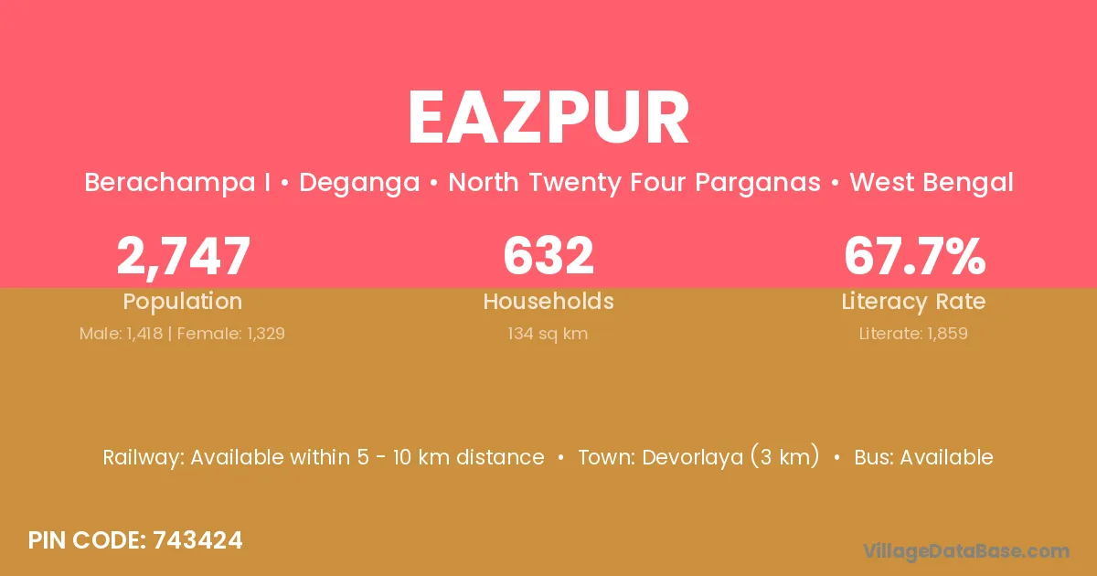 Devorlaya (3 km) is the nearest town to Eazpur village for major economic activities and is located approximately 3 km away.