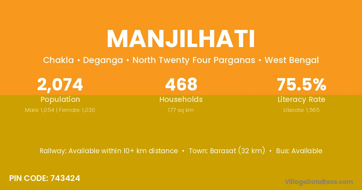 Barasat (32 km) is the nearest town to Manjilhati village for major economic activities and is located approximately 32 km away.