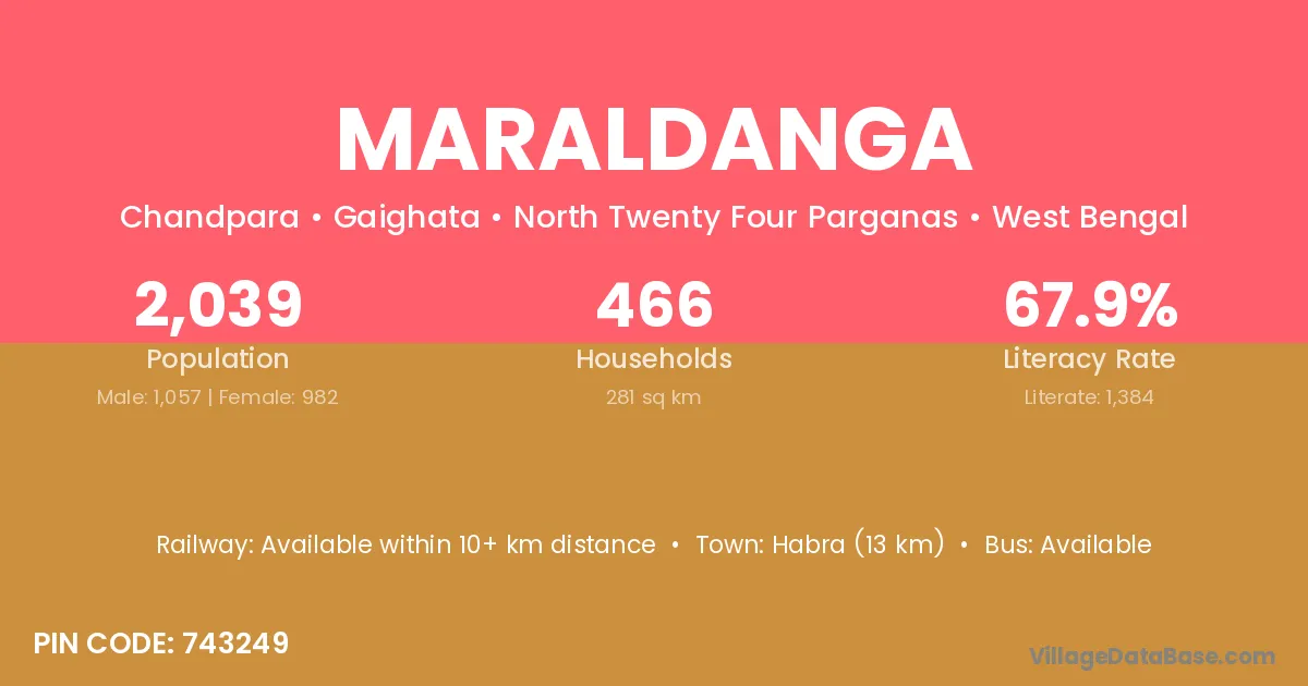 Habra (13 km) is the nearest town to Maraldanga village for major economic activities and is located approximately 13 km away.