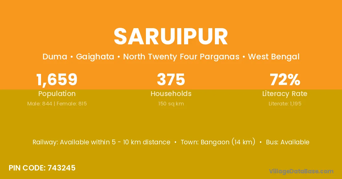 Bangaon (14 km) is the nearest town to Saruipur village for major economic activities and is located approximately 14 km away.