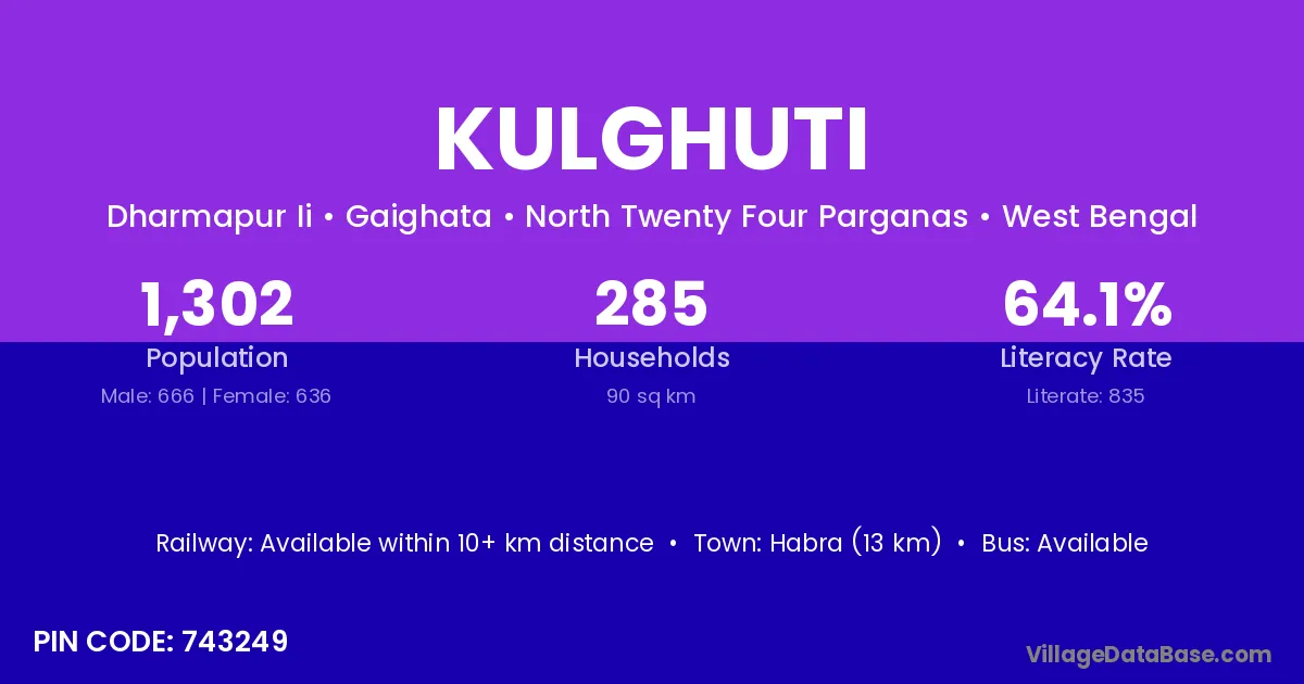 Habra (13 km) is the nearest town to Kulghuti village for major economic activities and is located approximately 13 km away.