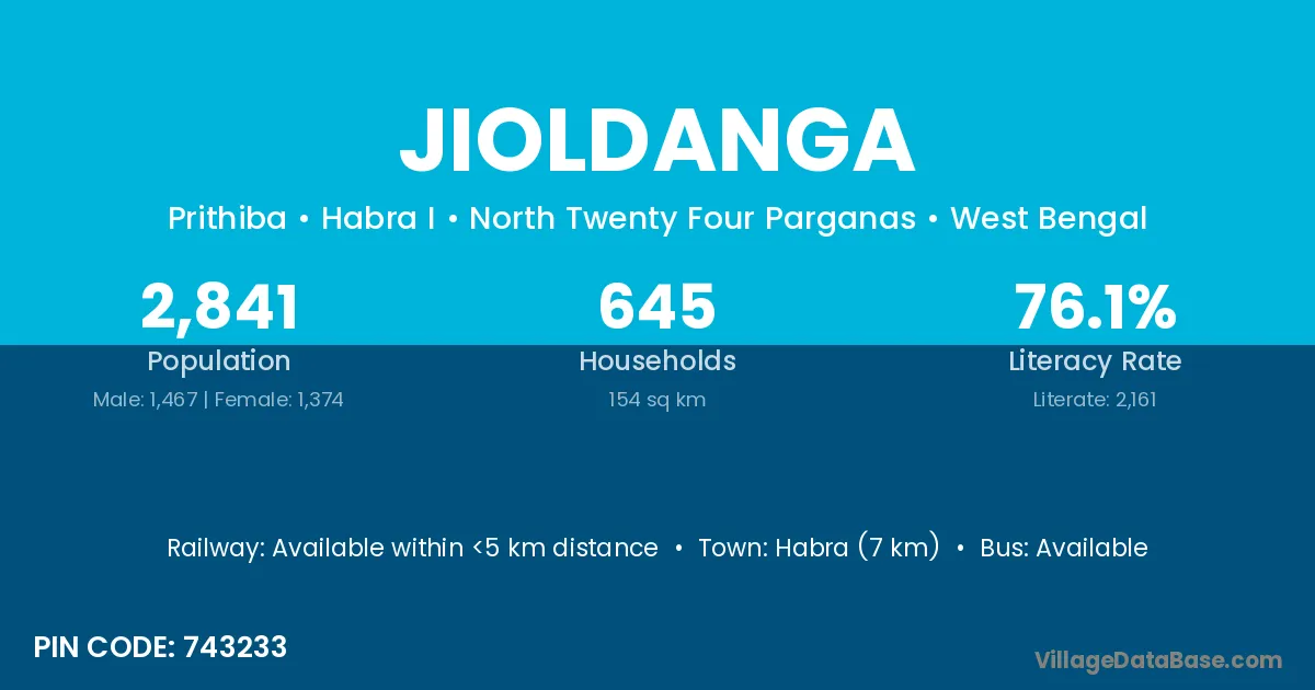 Habra (7 km) is the nearest town to Jioldanga village for major economic activities and is located approximately 7 km away.