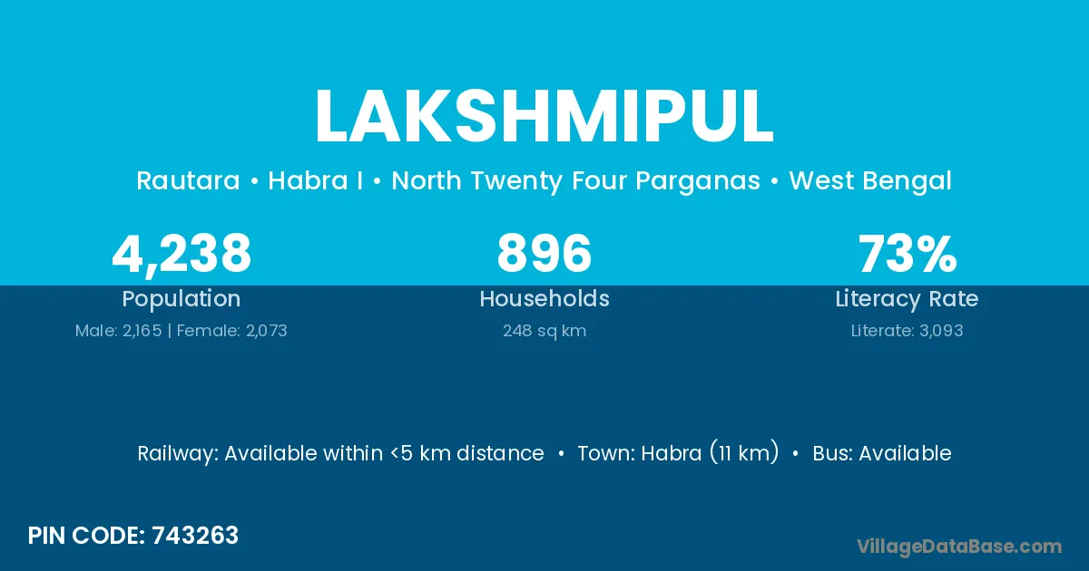 Habra (11 km) is the nearest town to Lakshmipul village for major economic activities and is located approximately 11 km away.