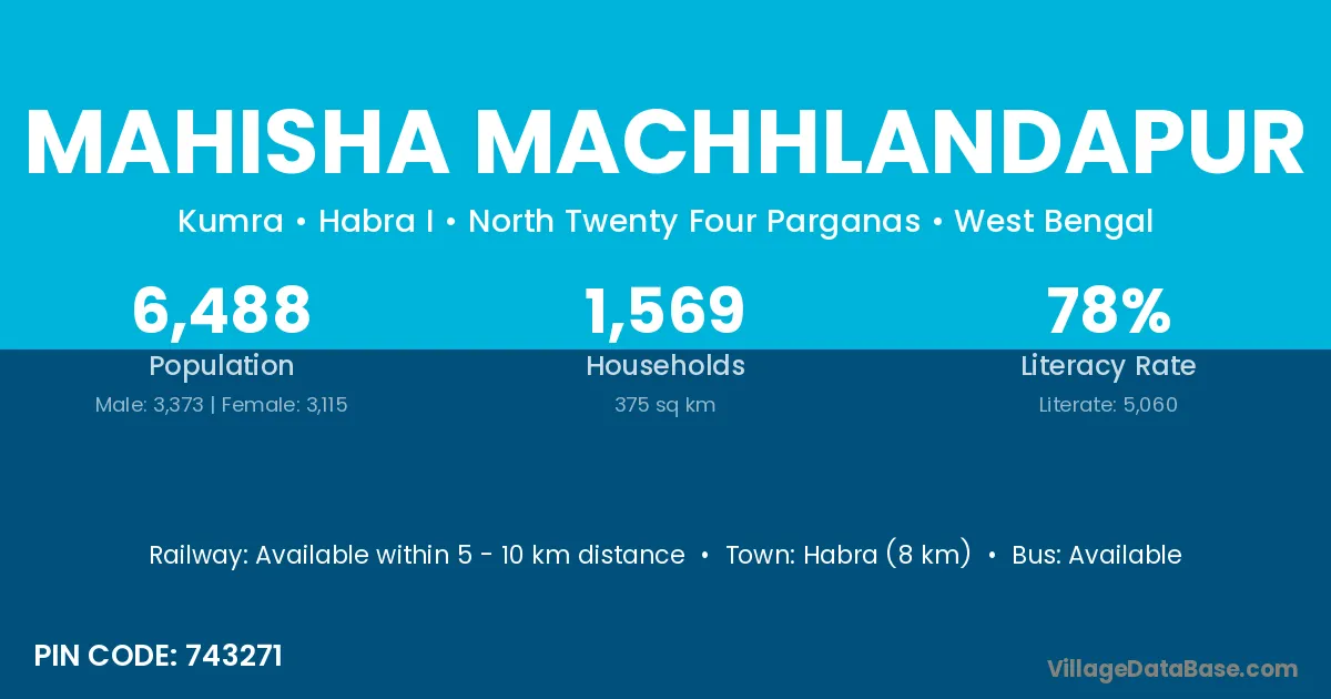 Habra (8 km) is the nearest town to Mahisha Machhlandapur village for major economic activities and is located approximately 8 km away.