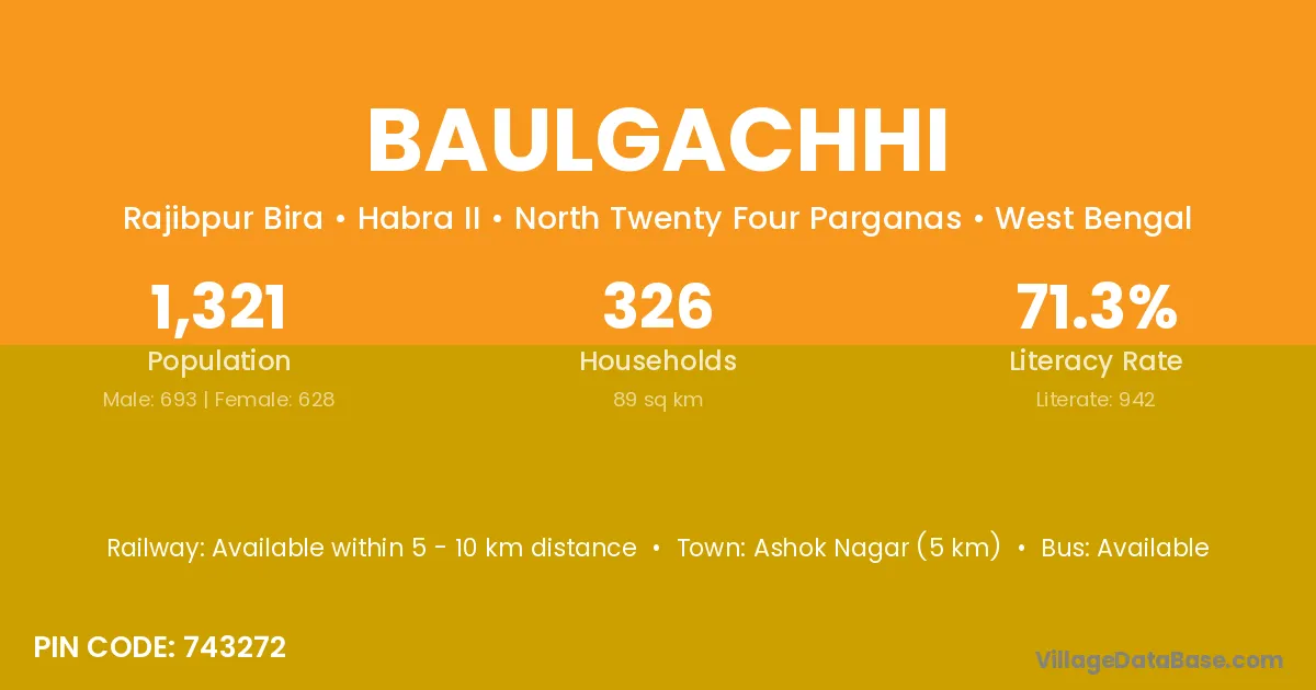 Baulgachhi village has a total population of 1,321 people, of which 693 are males and 628 are females.