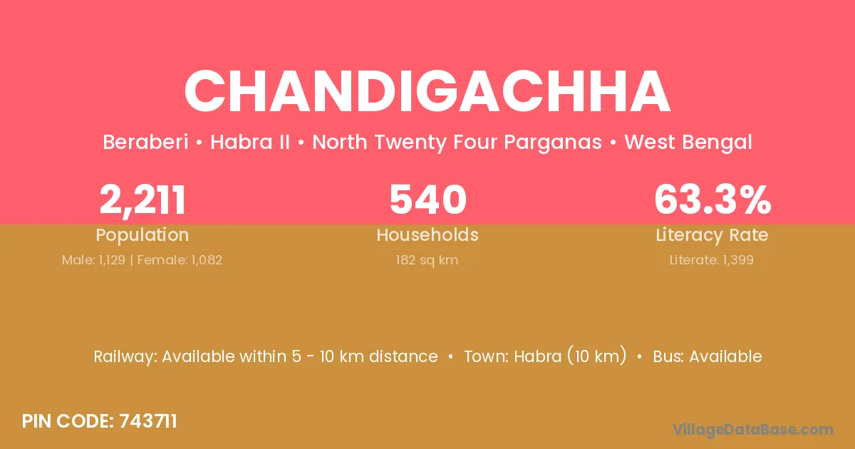 Habra (10 km) is the nearest town to Chandigachha village for major economic activities and is located approximately 10 km away.