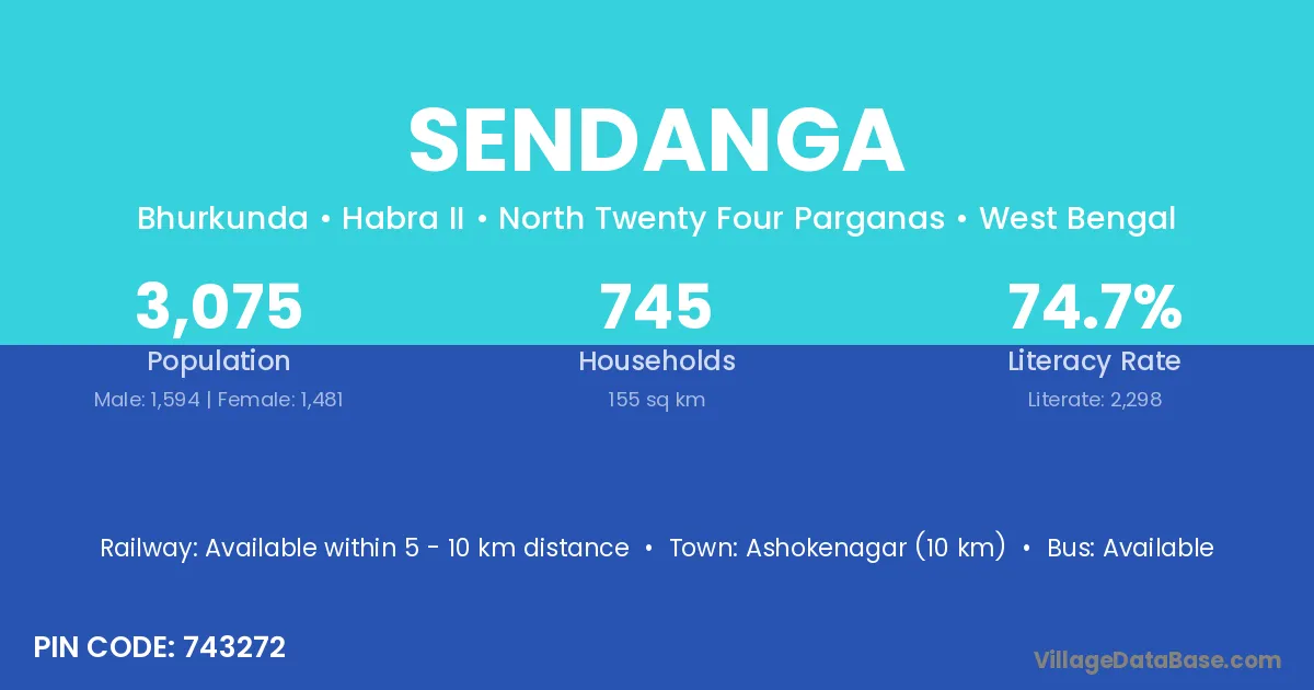 Ashokenagar (10 km) is the nearest town to Sendanga village for major economic activities and is located approximately 10 km away.