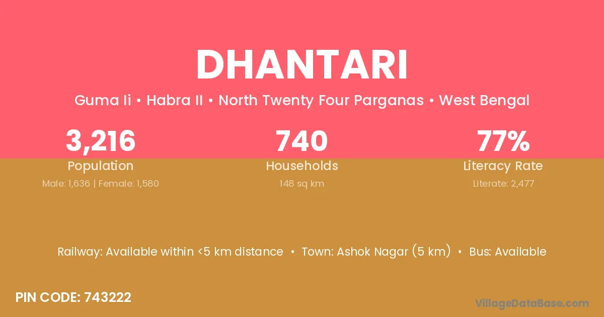 Ashok Nagar (5 km) is the nearest town to Dhantari village for major economic activities and is located approximately 5 km away.