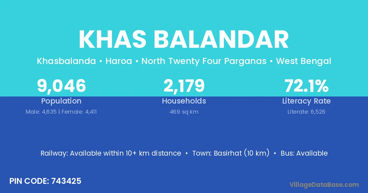 Basirhat (10 km) is the nearest town to Khas Balandar village for major economic activities and is located approximately 10 km away.