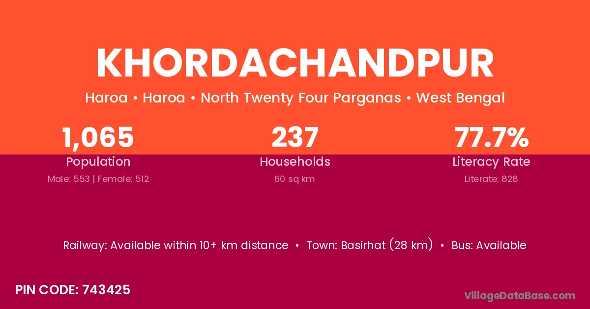 Basirhat (28 km) is the nearest town to Khordachandpur village for major economic activities and is located approximately 28 km away.