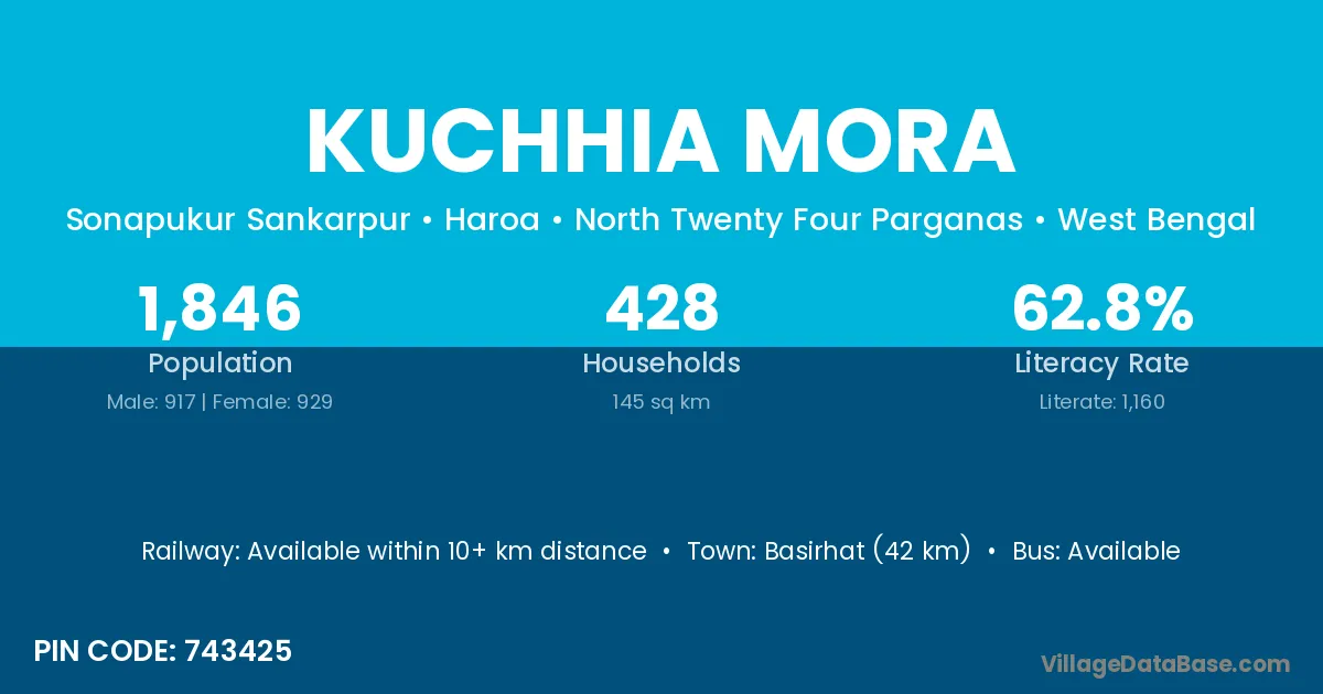 Basirhat (42 km) is the nearest town to Kuchhia Mora village for major economic activities and is located approximately 42 km away.