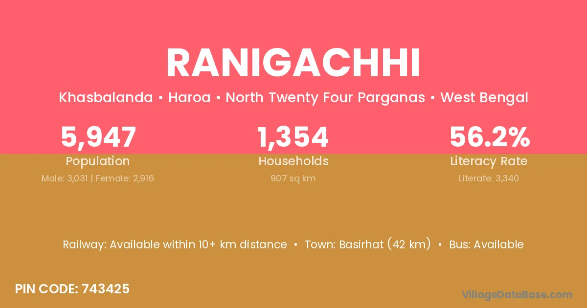 Basirhat (42 km) is the nearest town to Ranigachhi village for major economic activities and is located approximately 42 km away.