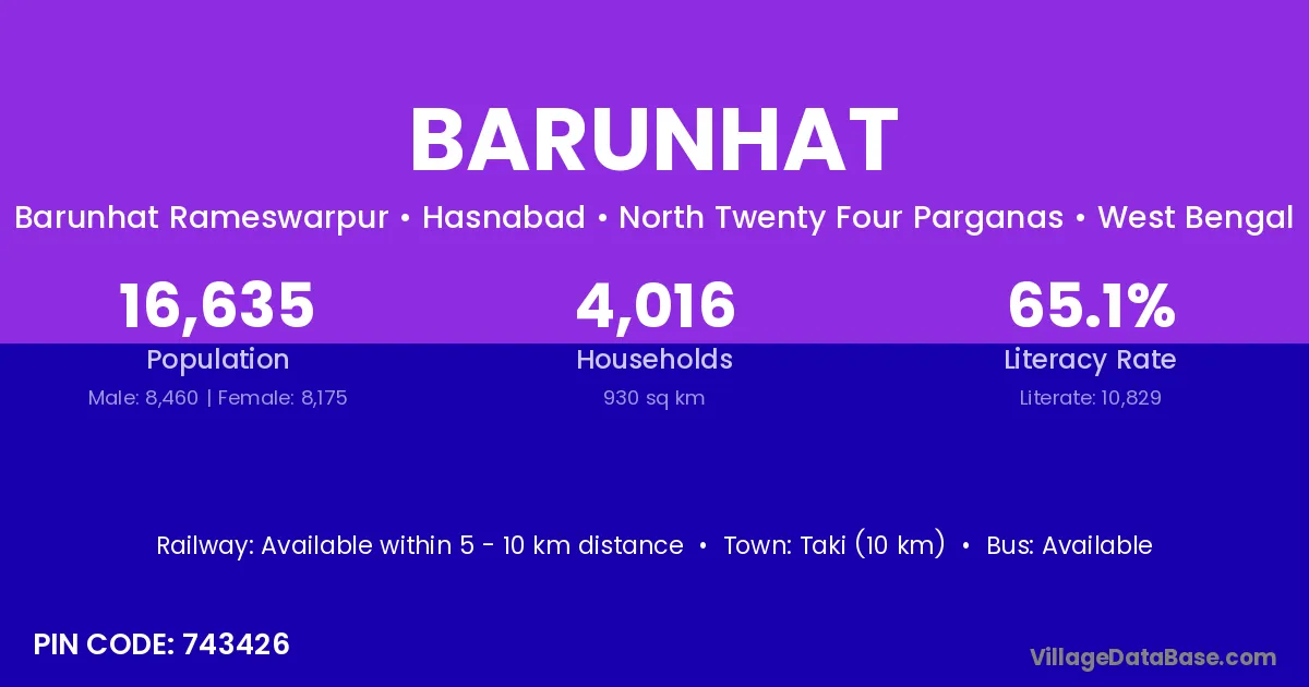 Taki (10 km) is the nearest town to Barunhat village for major economic activities and is located approximately 10 km away.