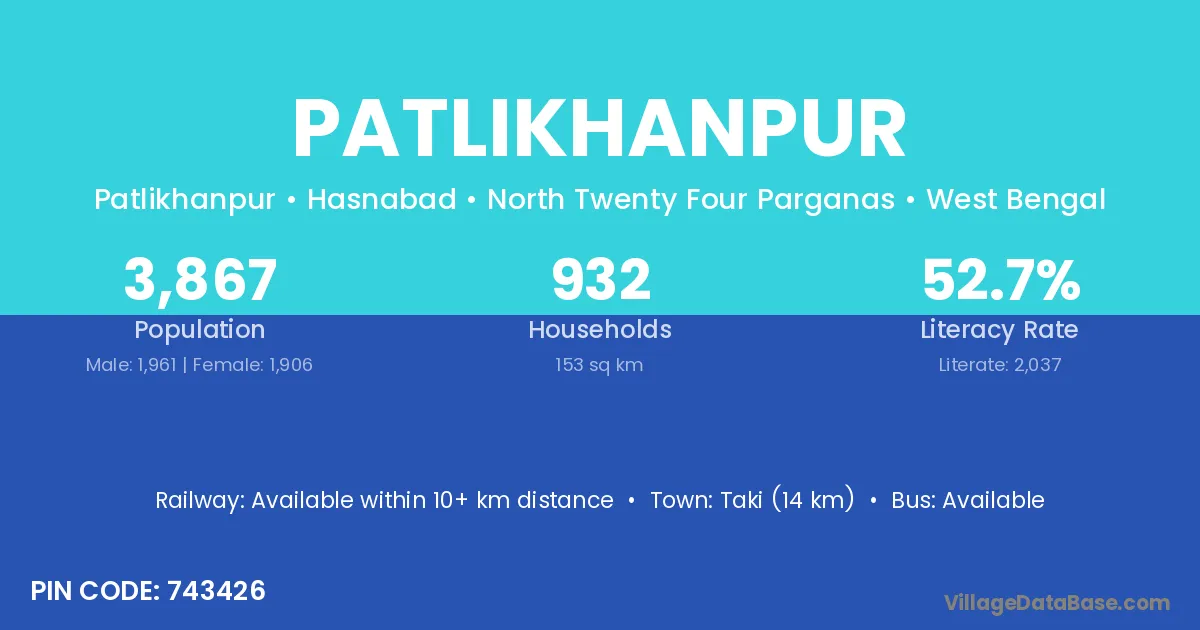 Taki (14 km) is the nearest town to Patlikhanpur village for major economic activities and is located approximately 14 km away.