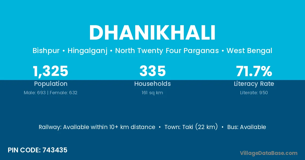 According to Census 2011 information, the village code of Dhanikhali village is 743435.