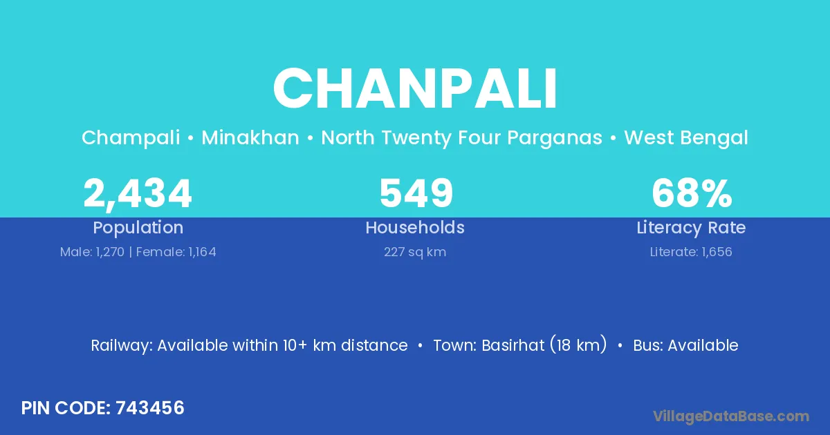Basirhat (18 km) is the nearest town to Chanpali village for major economic activities and is located approximately 18 km away.