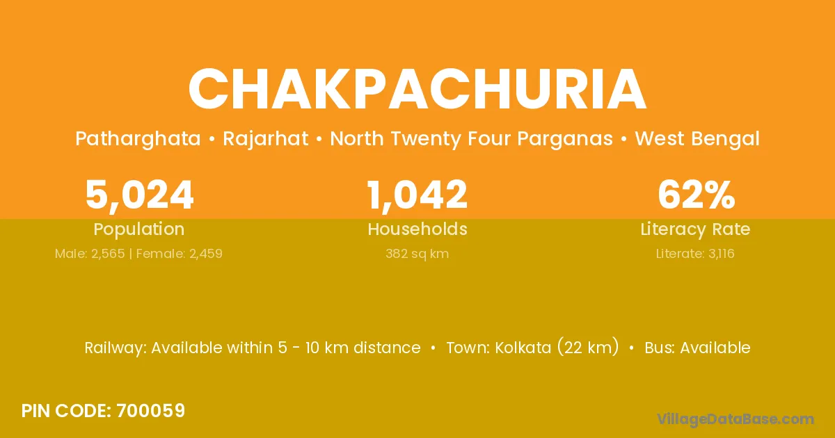 Kolkata (22 km) is the nearest town to Chakpachuria village for major economic activities and is located approximately 22 km away.