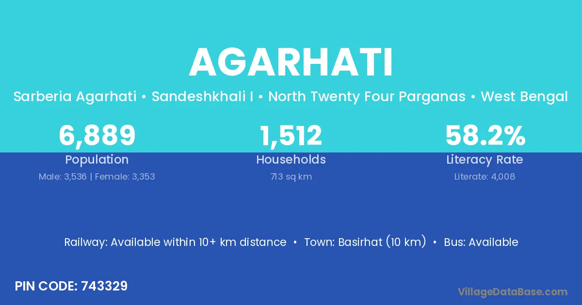 Basirhat (10 km) is the nearest town to Agarhati village for major economic activities and is located approximately 10 km away.