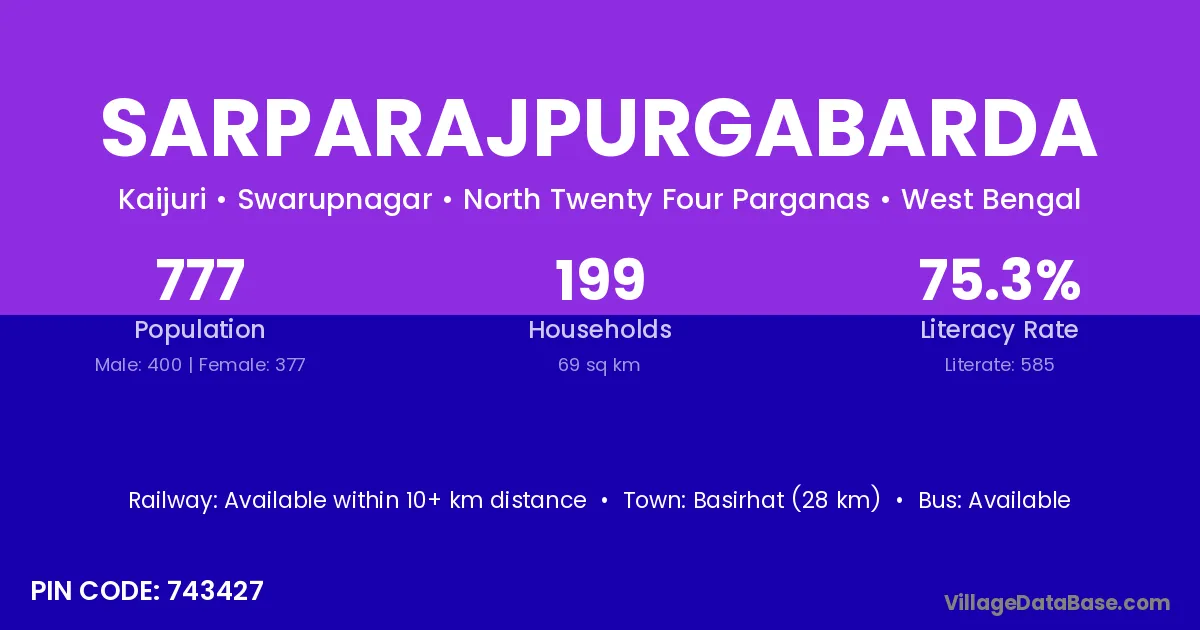 Basirhat (28 km) is the nearest town to Sarparajpurgabarda village for major economic activities and is located approximately 28 km away.
