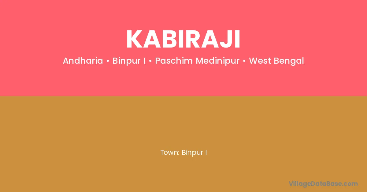 Kabiraji village is located in the Binpur I Subdivision of the Paschim Medinipur district in West Bengal.