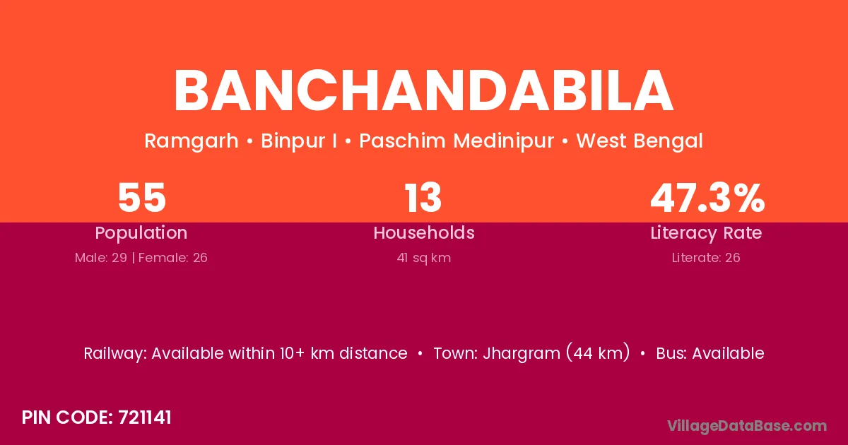 Jhargram (44 km) is the nearest town to Banchandabila village for major economic activities and is located approximately 44 km away.