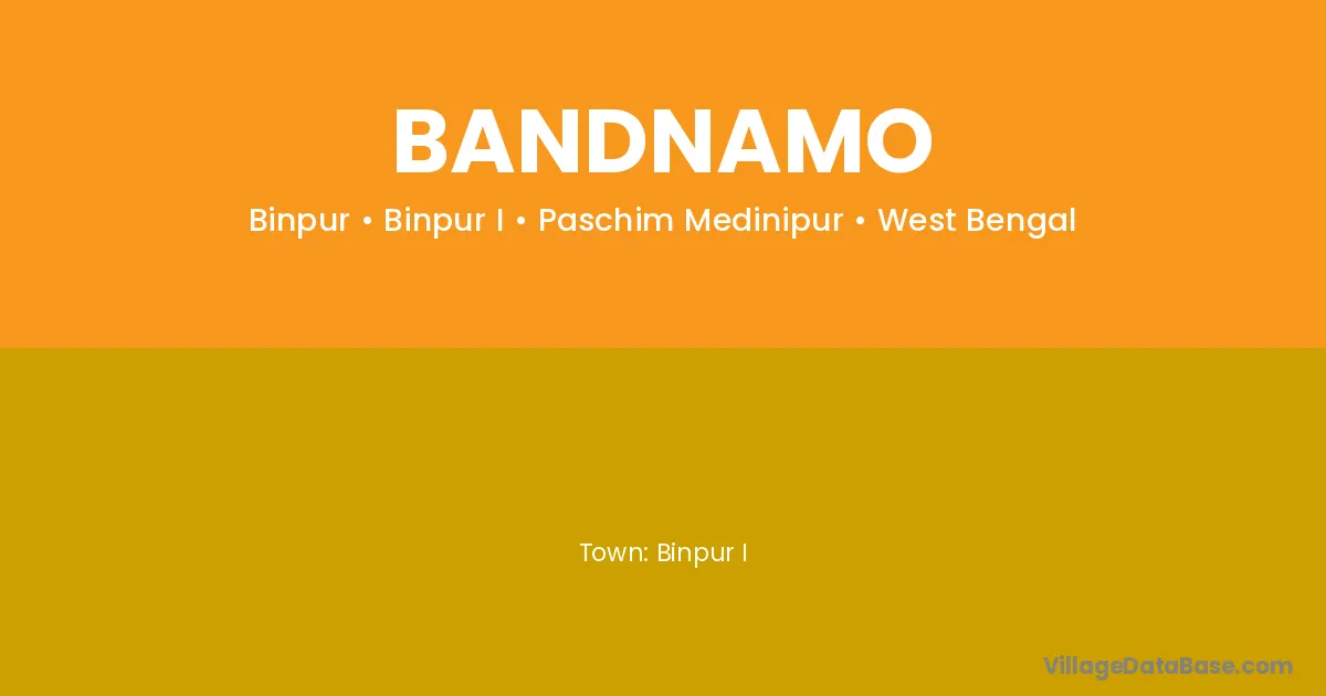 Bandnamo village is located in the Binpur I Subdivision of the Paschim Medinipur district in West Bengal.