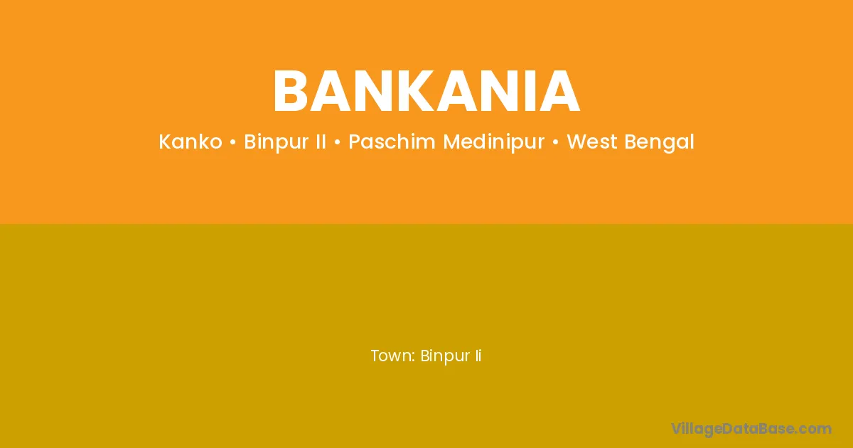 Bankania village is located in the Binpur II Subdivision of the Paschim Medinipur district in West Bengal.