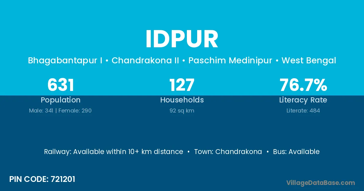 Idpur village is located in the Chandrakona II Subdivision of the Paschim Medinipur district in West Bengal.