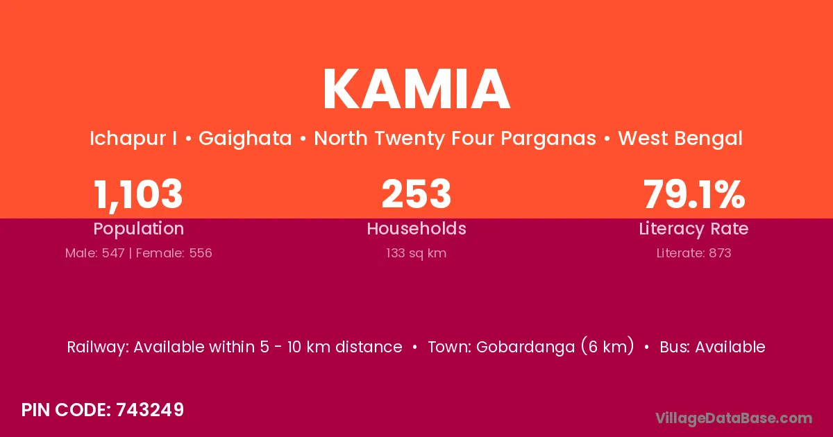 Dantan (10 km) is the nearest town to Kamia village for major economic activities and is located approximately 10 km away.