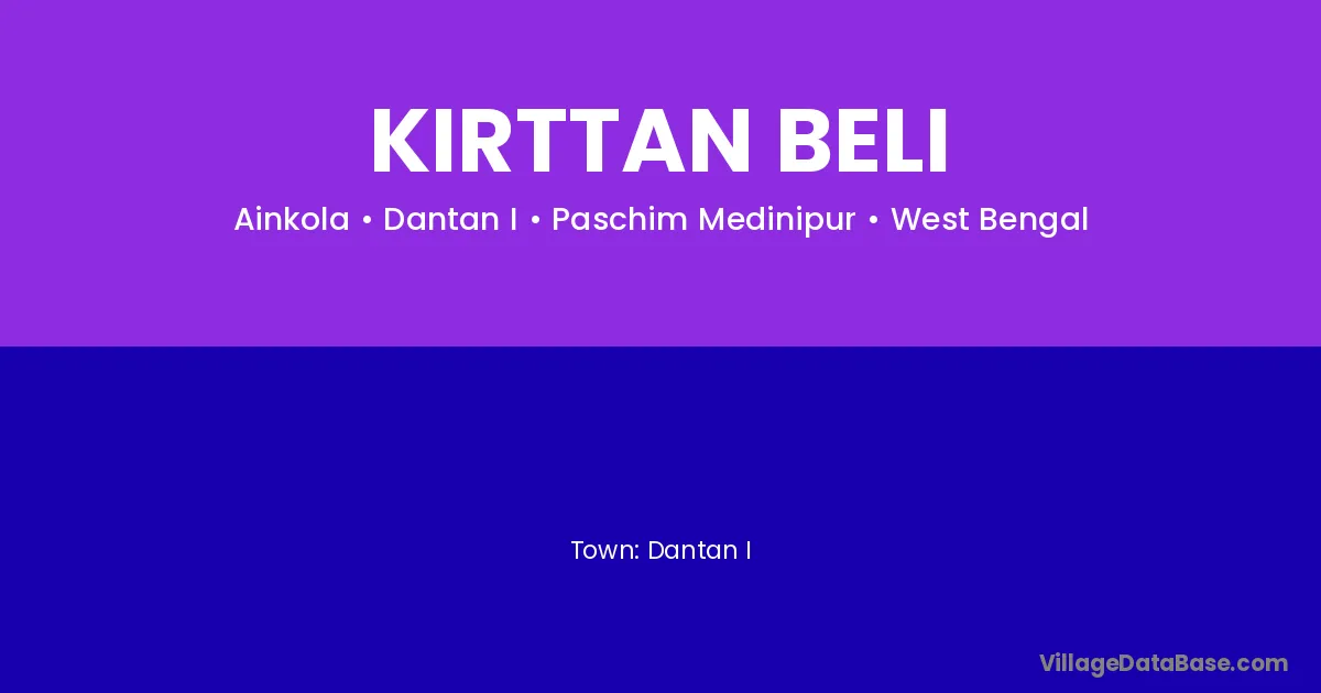 Kirttan Beli village is located in the Dantan I Subdivision of the Paschim Medinipur district in West Bengal .