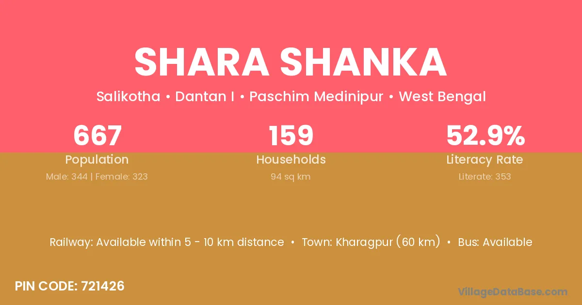 Shara Shanka village is located in the Dantan I Subdivision of the Paschim Medinipur district in West Bengal.