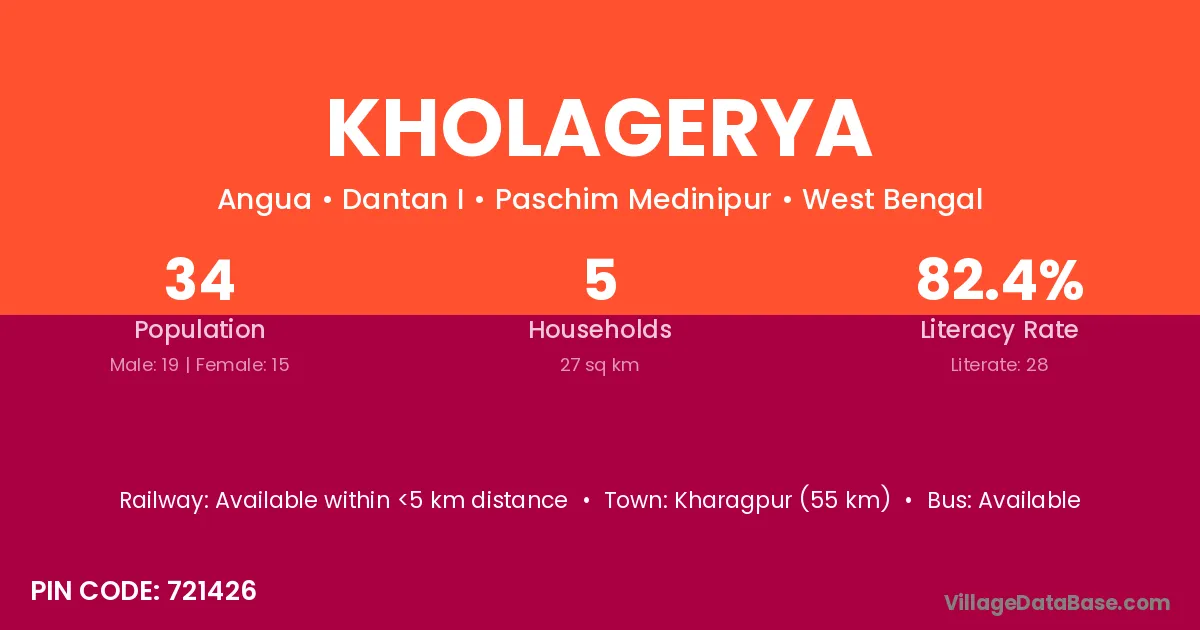According to Census 2011 information, the village code of Kholagerya village is 721426.
