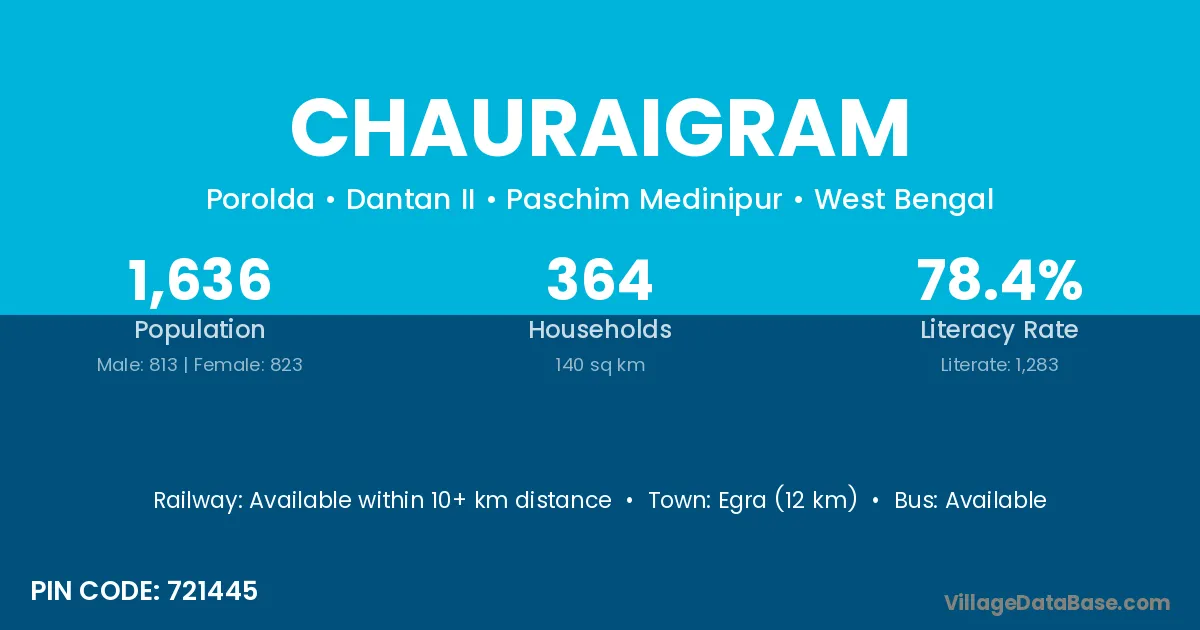 Egra (12 km) is the nearest town to Chauraigram village for major economic activities and is located approximately 12 km away.