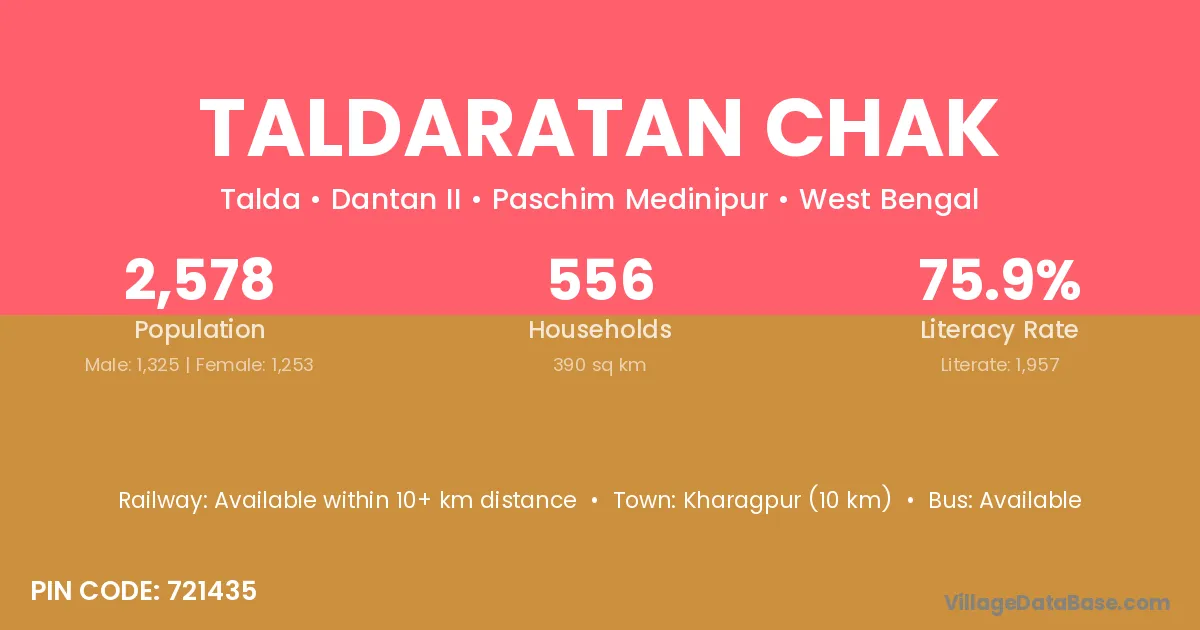 Taldaratan Chak village is located in the Dantan II Subdivision of the Paschim Medinipur district in West Bengal.
