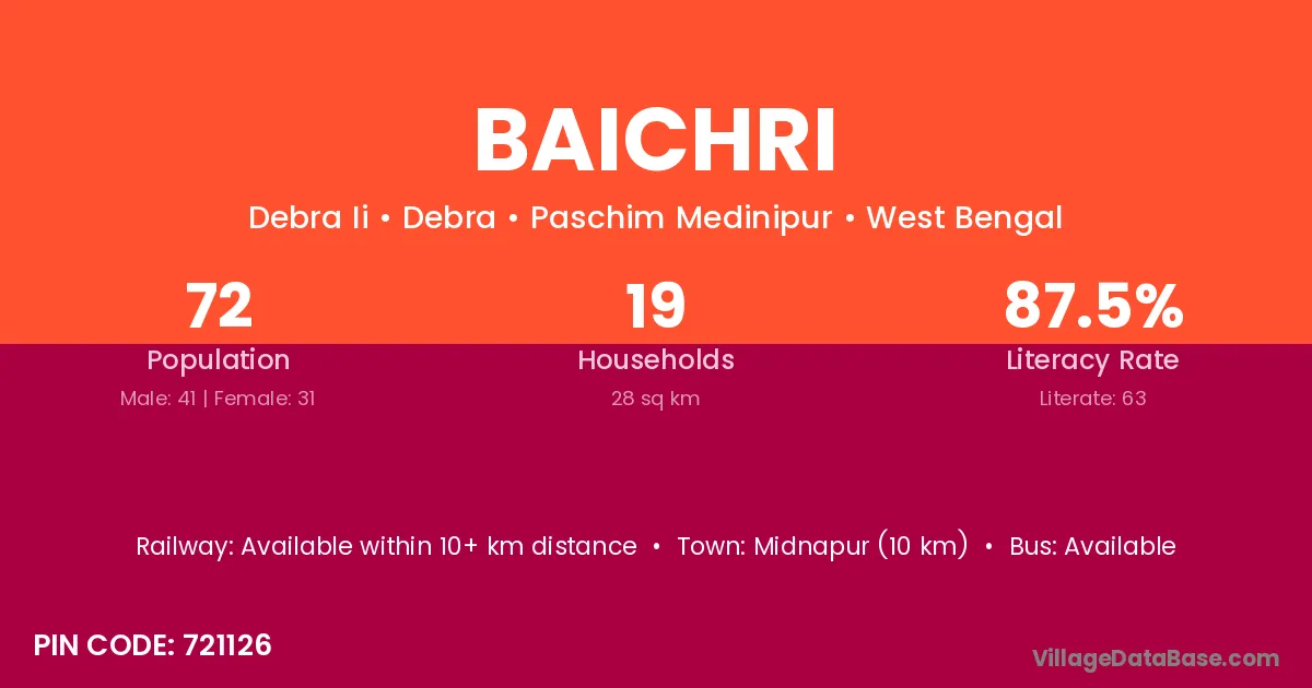 Midnapur (10 km) is the nearest town to Baichri village for major economic activities and is located approximately 10 km away.
