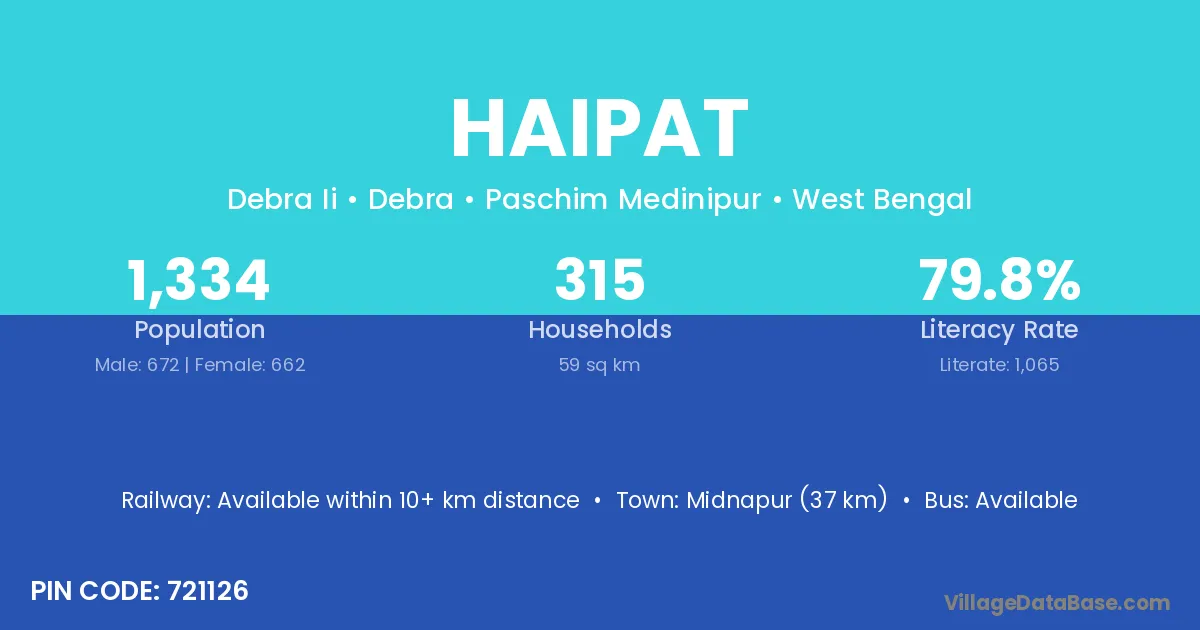 Midnapur (37 km) is the nearest town to Haipat village for major economic activities and is located approximately 37 km away.