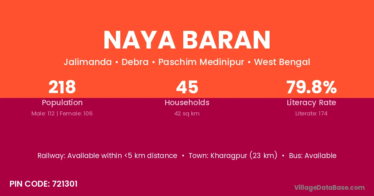 Naya Baran village is located in the Debra Subdivision of the Paschim Medinipur district in West Bengal.