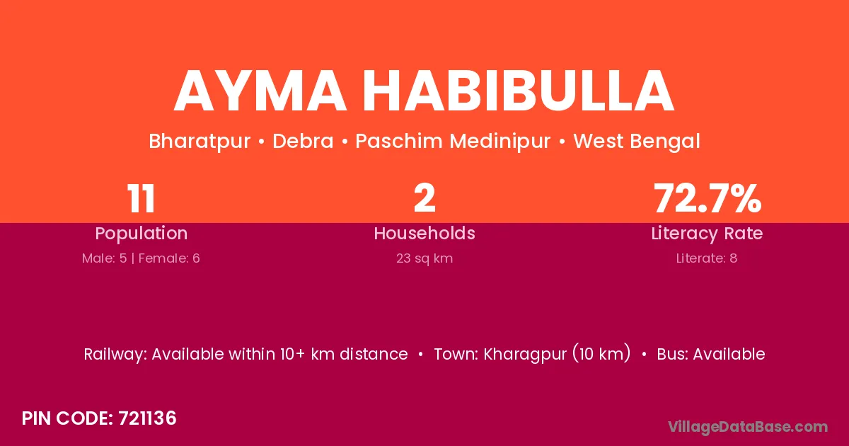 According to Census 2011 information, the village code of Ayma Habibulla village is 721136.