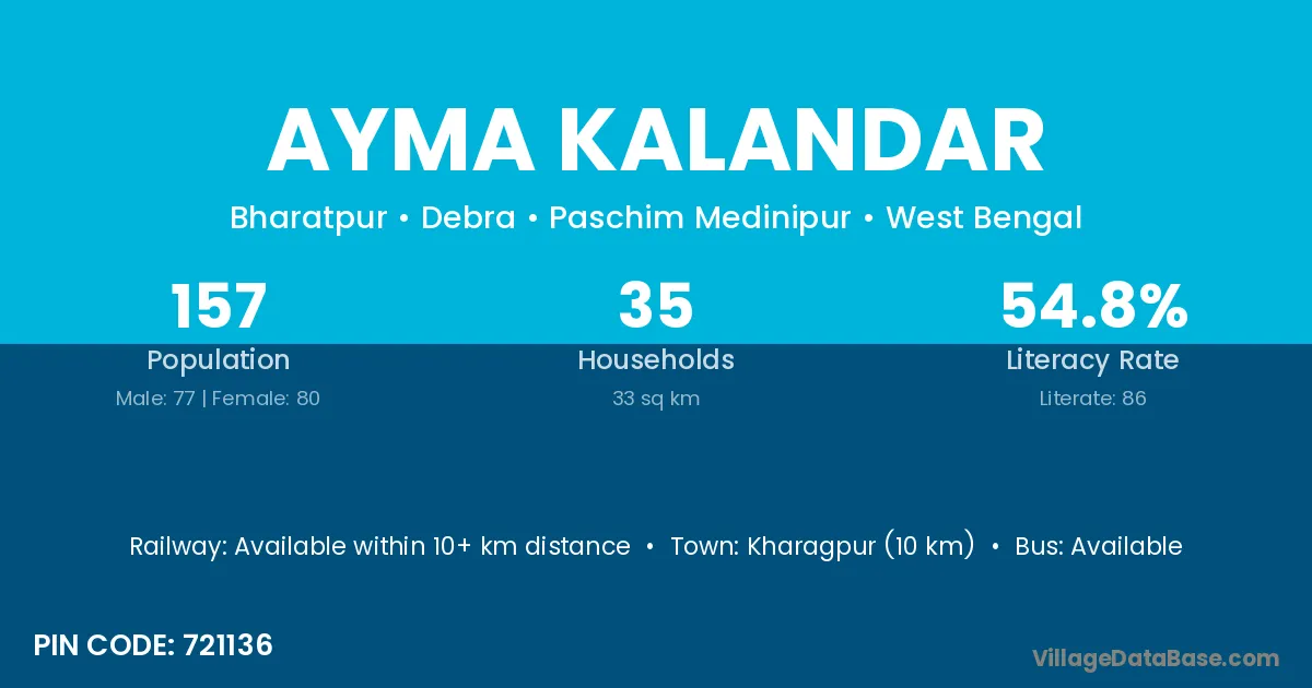 Ayma Kalandar village is located in the Debra Subdivision of the Paschim Medinipur district in West Bengal.
