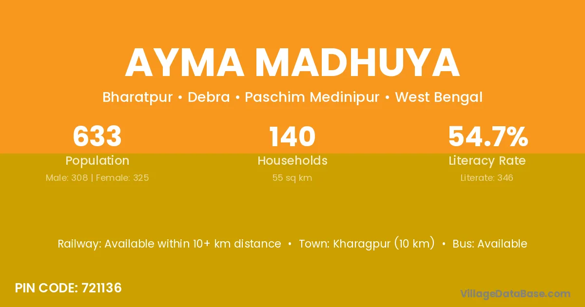Ayma Madhuya village is located in the Debra Subdivision of the Paschim Medinipur district in West Bengal.
