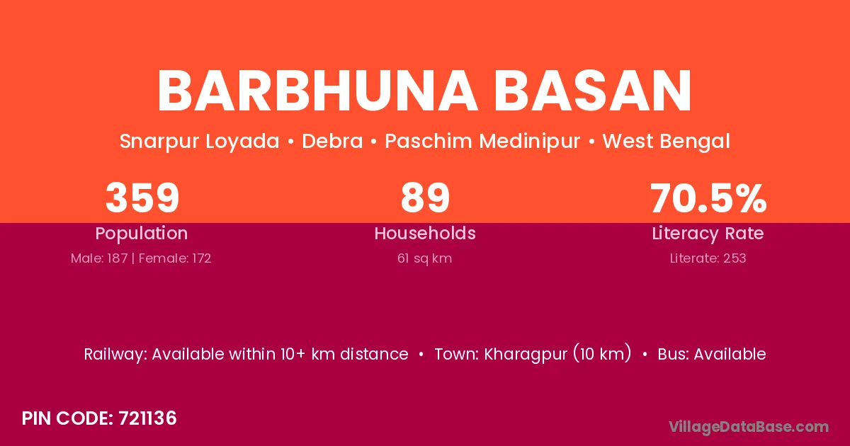 Barbhuna Basan village is located in the Debra Subdivision of the Paschim Medinipur district in West Bengal.