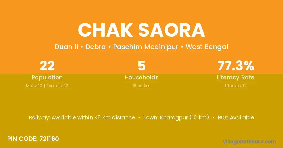 There are approximately 5 households in Chak Saora village.