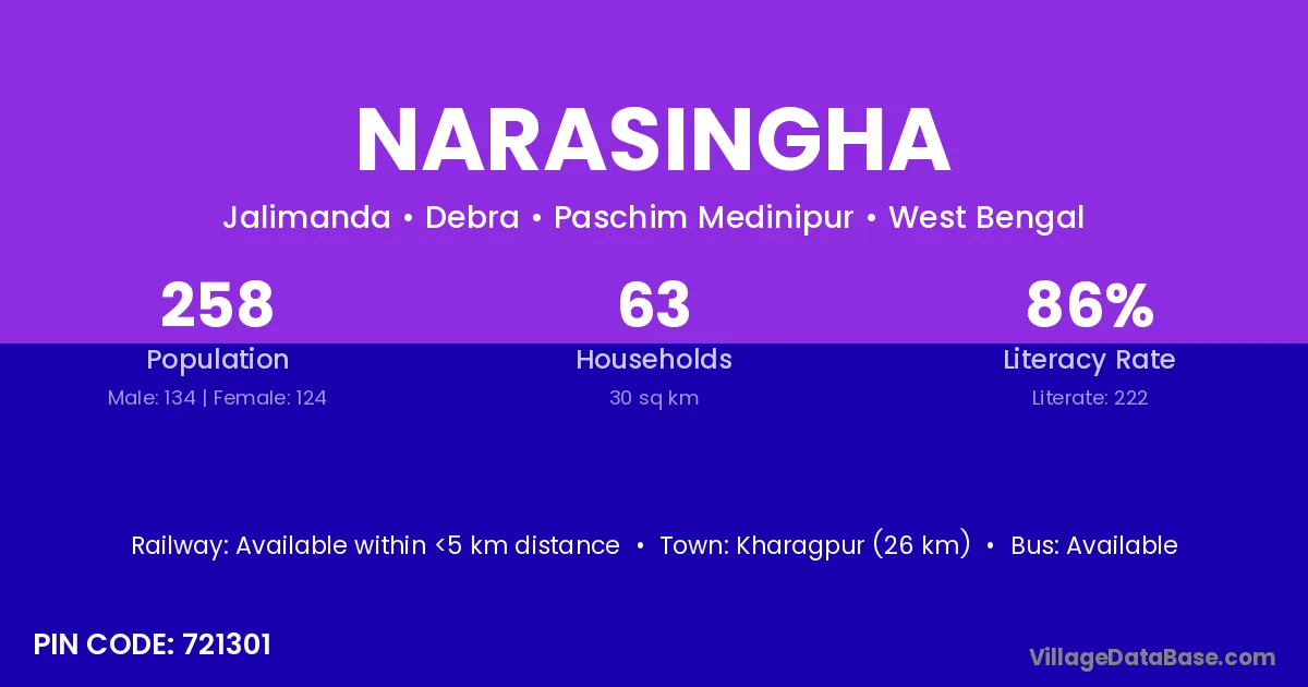 Narasingha village is located in the Debra Subdivision of the Paschim Medinipur district in West Bengal.