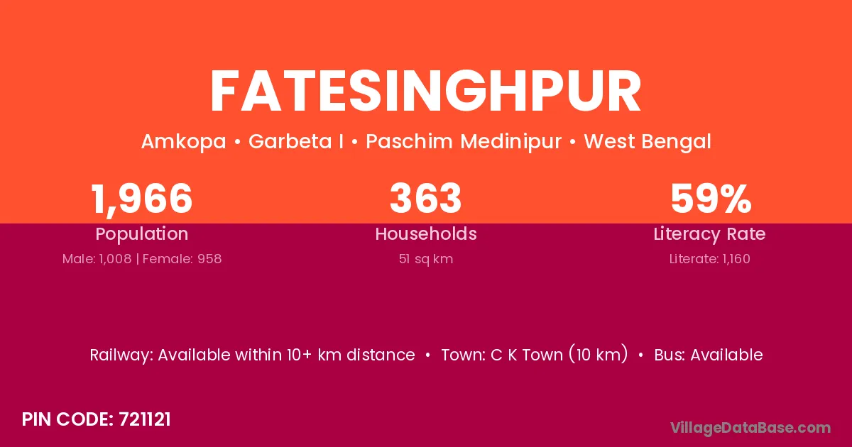 According to Census 2011 information, the village code of Fatesinghpur village is 721121.