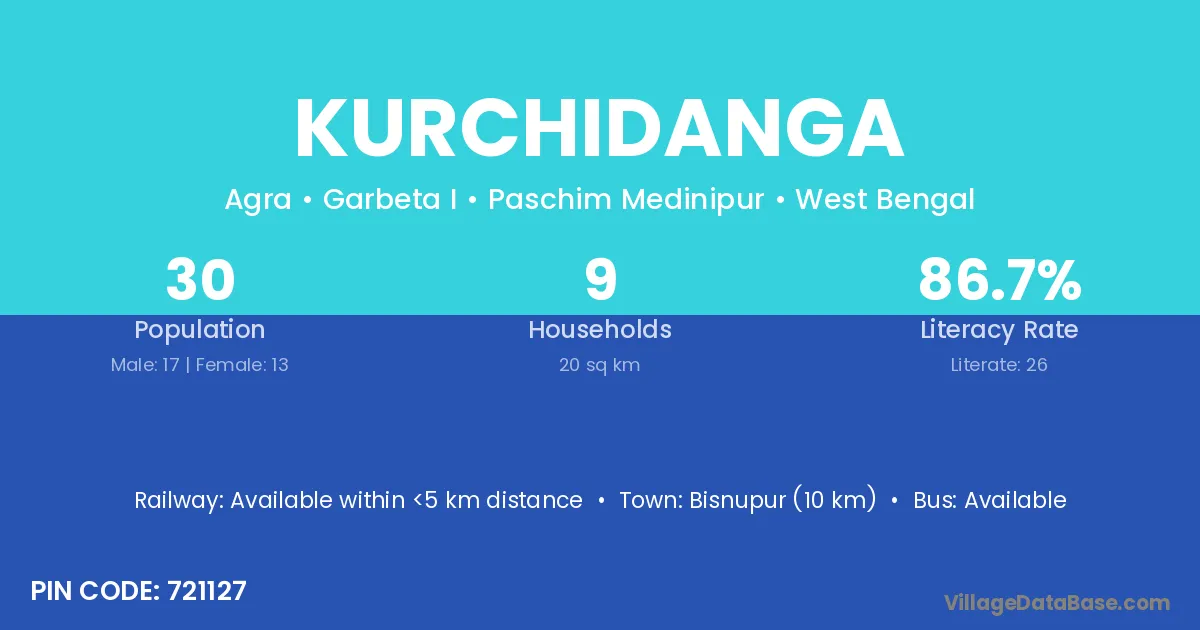 Bisnupur (10 km) is the nearest town to Kurchidanga village for major economic activities and is located approximately 10 km away.